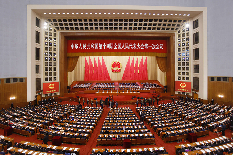 3月10日,中华人民共和国第十四届全国人民代表大会第一次会议宪法宣誓仪式在北京人民大会堂举行。